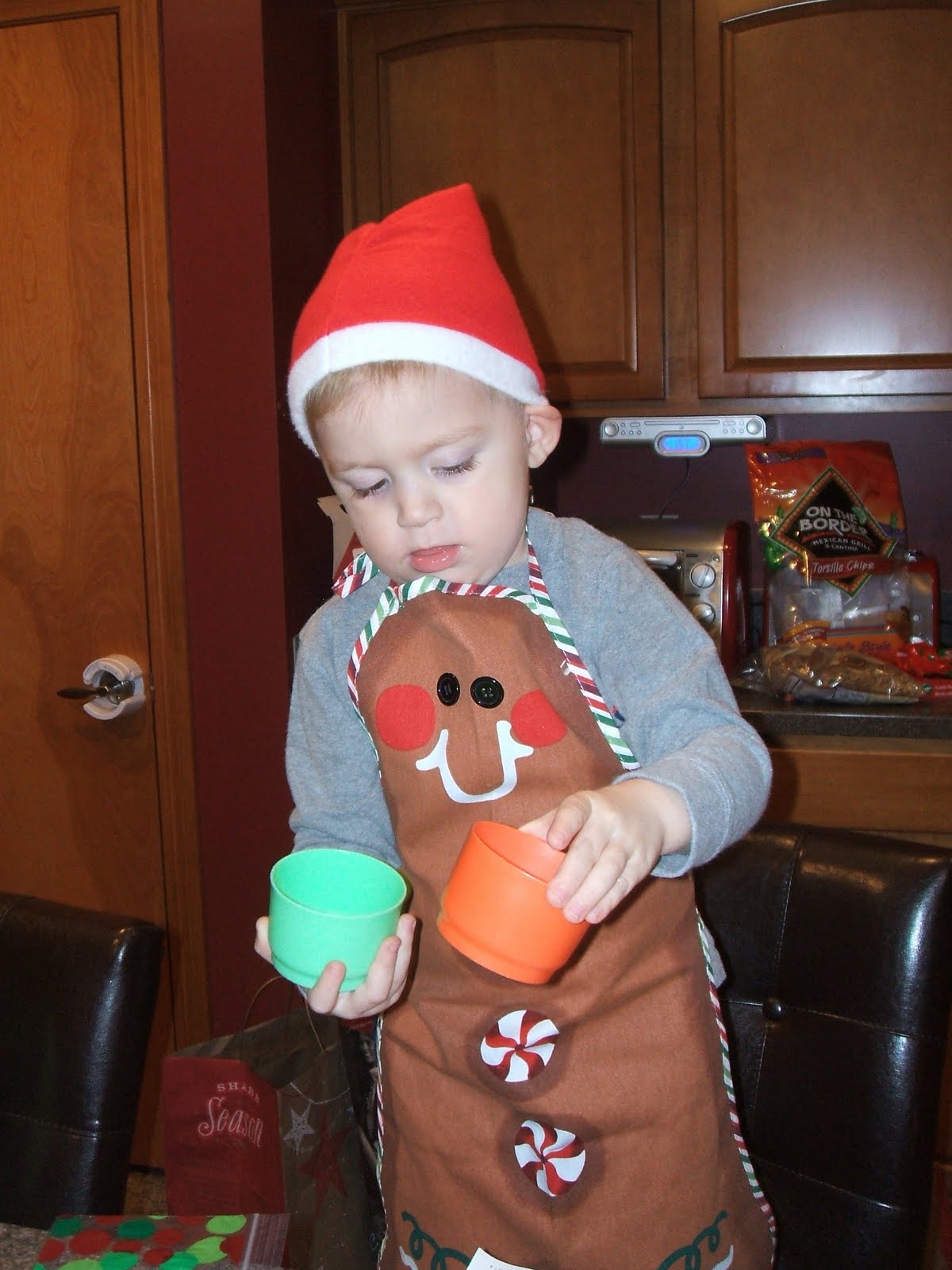 Hunter loved Santa but didn't understand why he didn't give him his truck (when he first got off his lap he hung his head and pouted out his lip and said "he didn't give me my bam bam truck" and then after Santa explained he had to build it and that he would deliver it to him Hunter was fine.